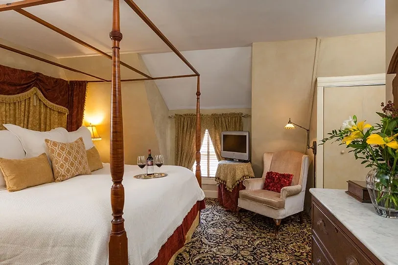 Victorian splendor meets modern convenience at this boutique hotel in the beautiful village of Woodstock. This luxury Vermont inn features 8 romantic guest rooms, all with private baths, period antiques, flat-screen cable TV, Wi-Fi, and air conditioning. Four suites with fire places and four classic rooms available. Guests enjoy a sumptuous candlelight breakfast, featuring a selection of entrees and served at individual tables. This romantic Vermont bed and breakfast also offers a tavern and terrace with a pond and perennial garden. Plenty of free parking for guests.