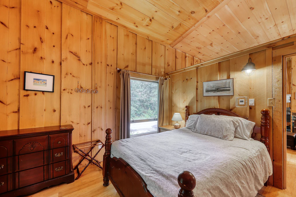 Make yourself at home in the airy living space, whether you're preparing waffles in the kitchen or reading and playing board games. Use the free WiFi to track the mountain conditions all winter, soak in the summer sun on the deck as your dog runs around in the yard (a nightly pet fee applies), and end each evening with stories around the firepit and movies on the TV and Roku (with Netflix).