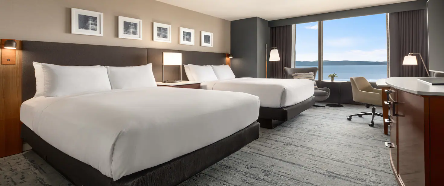 Overlooking Lake Champlain and the Adirondack Mountains, the hotel features brand new rooms within walking access to the Waterfront and the Church Street Marketplace. Relax outside with your favorite beverage in our garden terrace or patio. Hilton Burlington is the perfect destination for a variety of dining, arts, entertainment, and outdoor activities. Our brand new guestrooms offer plenty of space to work or unwind.