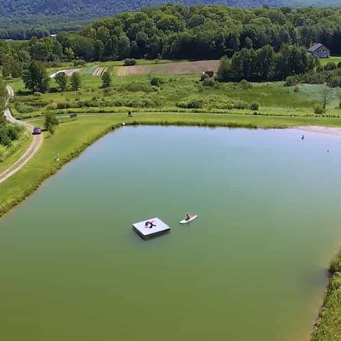 The two-acre pond is a spring-fed summer oasis with designated swim area and sandy beach for castle-building. There are no boats allowed, but there’s plenty of aquatic wildlife to discover in this kid-friendly swimming spot!