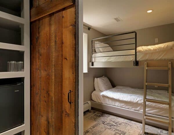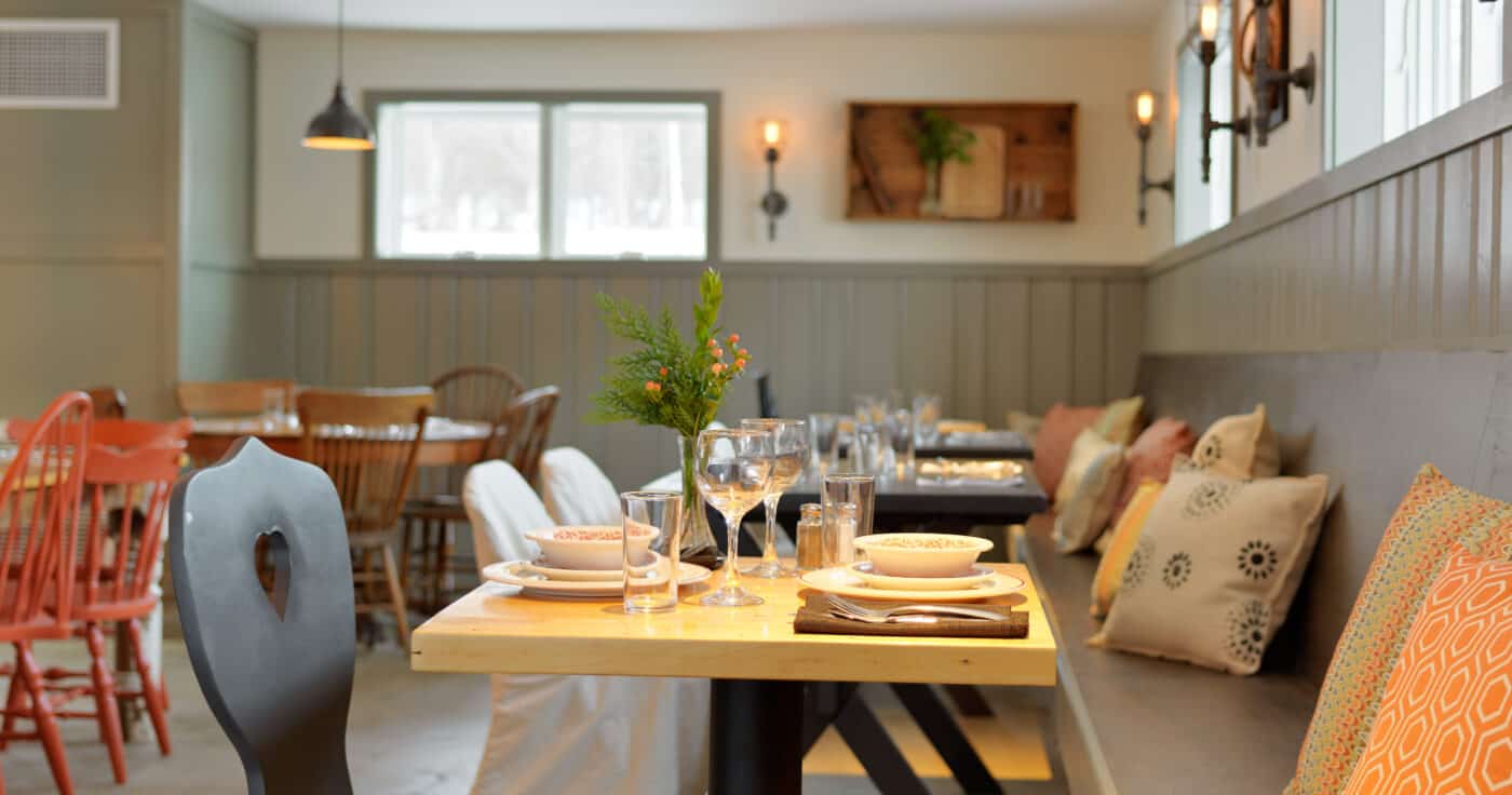 Located 1.7 miles from Mad River Glen, and 4.8 miles from Sugarbush’s Lincoln Peak, our boutique inn features 18 guest rooms with unique family-friendly layouts to maximize accommodation. The three buildings containing inn rooms are spread throughout the property. Breakfast is included for all Inn guests. In addition to our guest rooms, we also have an onsite restaurant and pub, and a game room where guests can play a game of shuffleboard on the newly refurbished antique shuffleboard table, or a game of foosball. Board games, cribbage, and cards are also available.