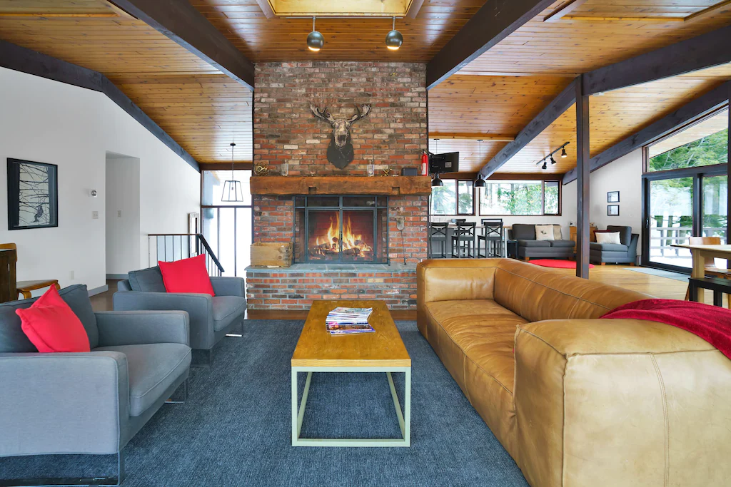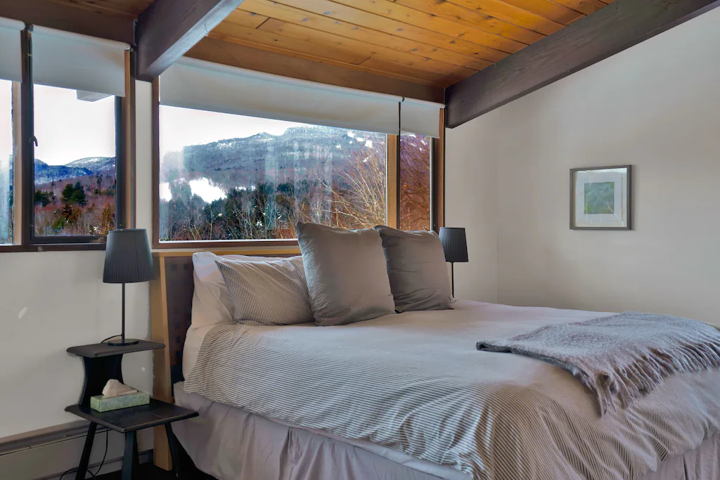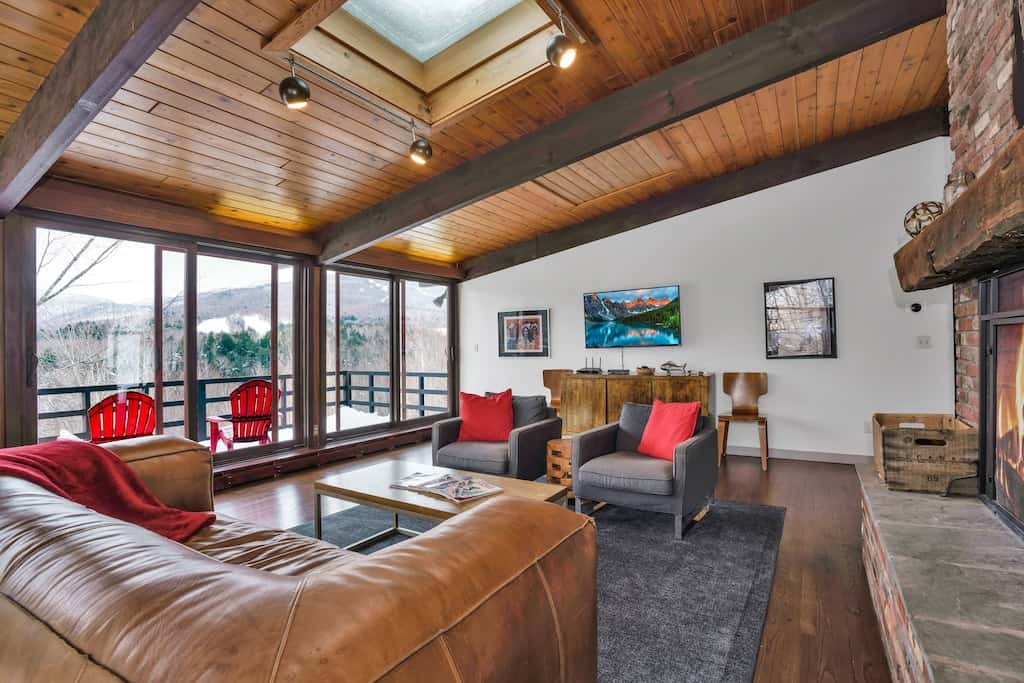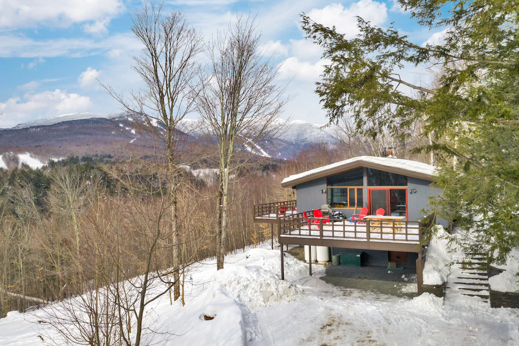 An amazing year round vacation rental -2miles to skiing in the winter and adjacent the outdoor HOA pool and tennis courts in summer. This newly updated 5-bedroom, 3-bathroom home sleeps 10 ( or 10 adults with 2 extra kids), a great family friendly set up and flow. The whole house was recently fully renovated. Absolutely amazing year-round views of Mt. Mansfield and surrounding mountains, the ski trails and lush colorful foliage in the fall. On the lower level, the house has a full mud room with ski racks/storage. A private hot tub (with views) and game room (foosball) with flat screen and fireplace on the first level. 3 bedrooms, a full bath and laundry room on the lower level as well. Upstairs has an open floor plan with a larger main living room and large fireplace, dining area for 10 + people, a full kitchen with breakfast bar. The master has adjacent bathroom , an additional bedroom and bathroom on the upper level as well. Lots of outdoor deck space with picnic table, gas BBQ and loungable Adirondack chairs. All stylishly and comfortably put together for a relaxing vacation. Well appointed amenities throughout.