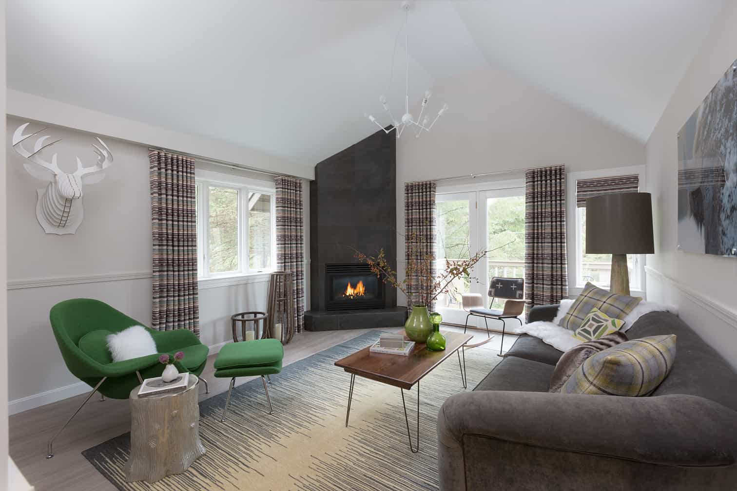 Explore all that Stowe has to offer from our modern take on a classic Vermont ski house. Mountain biking in Vermont is easily accessed on the trails leading from our Stowe hotel's back door. Shopping in downtown Stowe is just a short 10-minute walk away. Stowe Vermont ski slopes are a 15 minute drive (or free shuttle ride) up the hill. We offer storage for your active gear, and a printed field guide to help you choose the Stowe area activities and attractions that fit your lifestyle and budget. Our expansive guest lounge and seasonal heated pool are perfect after hitting the slopes, leaf peeping, hiking, or mountainside yoga.