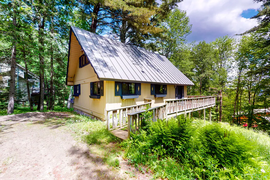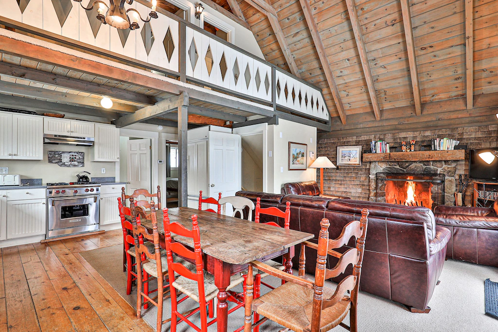 This family home is located a short walk to the Sachem trail. The multi-level arrangement offers ample space to enjoy cooking in the kitchen, lounging in the living room with wood-burning fireplace, hanging out in the lower level recreation room, or soaking in the private hot tub.