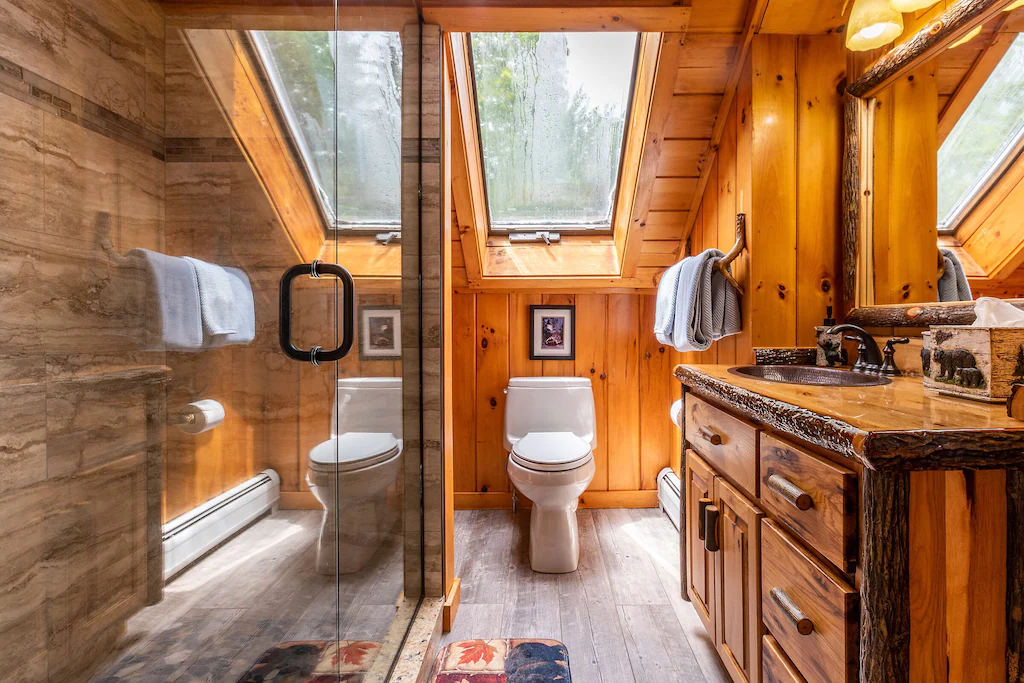 The home offers 9 bedrooms, 7 bathrooms and plenty of space for up to 24 people to stay very comfortably. The entire house has a natural ambiance, from the golden-brown wood that forms the walls and ceiling, to the unique wood logs used to make the beds, to the tasteful rustic decorations, all with luxury in mind.