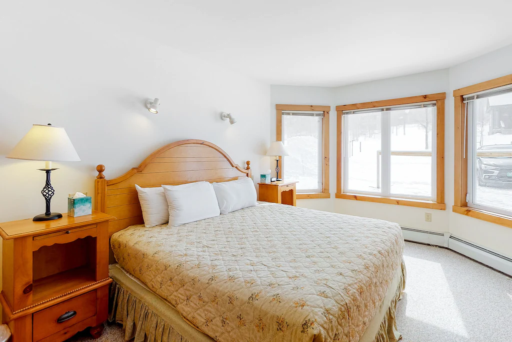 A ski-in condo nestled between Jay State Forest and Jay Peak Resort Golf Course, this getaway serves as a fantastic launchpad for your alpine adventures. Composed of two adjacent condos, this prime locale allows for easy ski-in access via the Grammy Jay run. Each sunlit abode features a cozy place to both unwind and entertain on your trip. In Jay Peak Village Home 367A, the welcoming living area features ample seating and one of four 4k TVs for streaming your favorite movies and shows. The pristine kitchen is equipped with a full suite of appliances and a three-person island for meal prep.