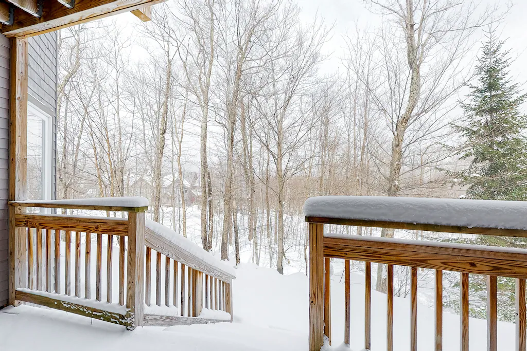Take in mountain views in the fresh alpine air on the front deck. In Jay Peak Village Home 367B, the living area features a gas fireplace and TV. Another full kitchen is equipped with everything you need to create your favorite meals. Added perks of this charming dual-condo vacation rental include baseboard heating and complimentary WiFi.