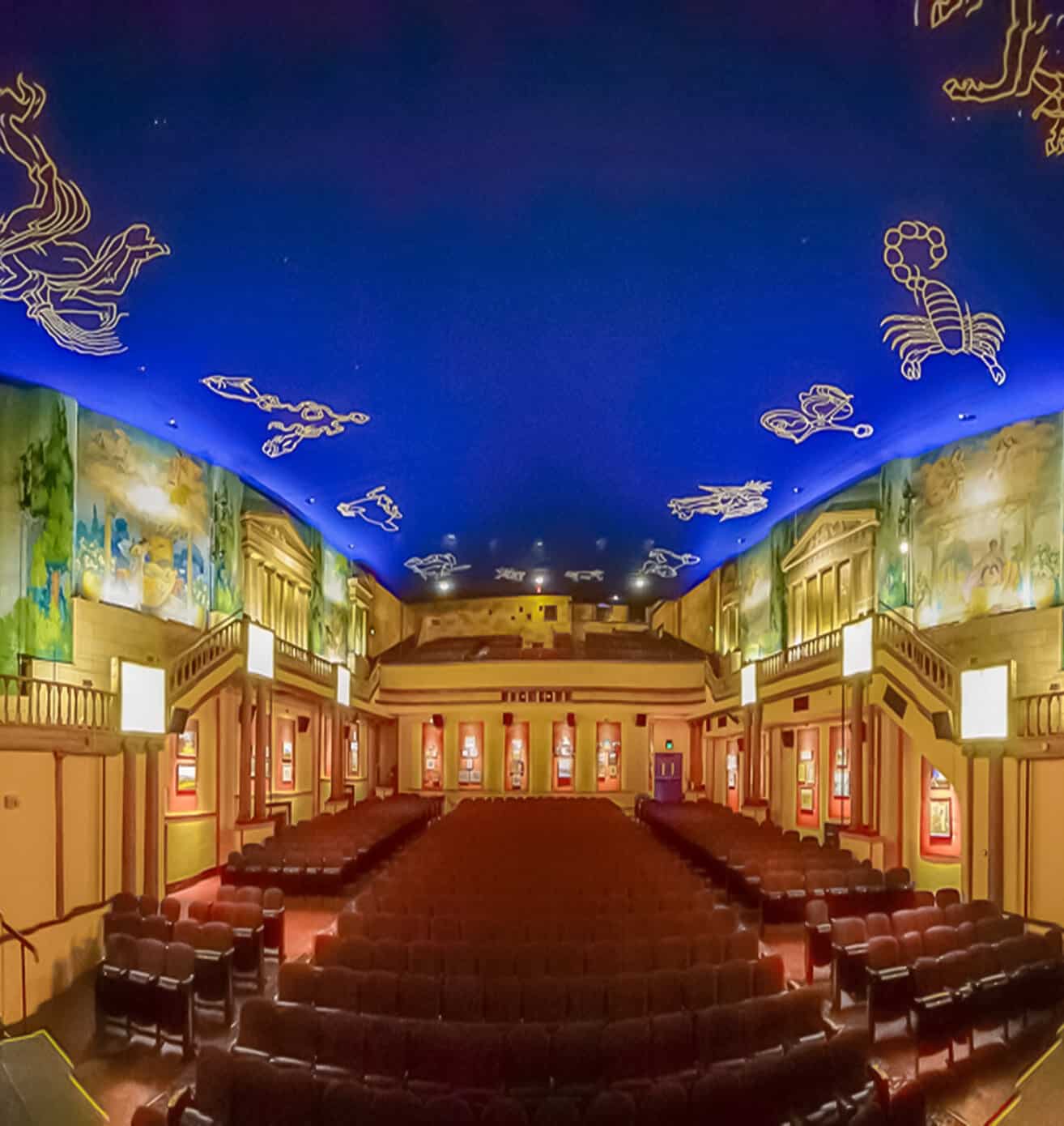 The Latchis’ Greek heritage put a unique twist on the classic geometric plaques that adorn the sculpted exterior of our building and differentiate us from other Art Deco hotels. The brothers commissioned murals of Greek deities by renowned artist Louis Jambour for our Main Theatre and installed their statues throughout the terrazzo-floored interior. Today, Hebe, goddess of youth and cupbearer for Zeus, guards the entrance to our main hall, blessing all who enter there with the ever-invigorating essence of art.