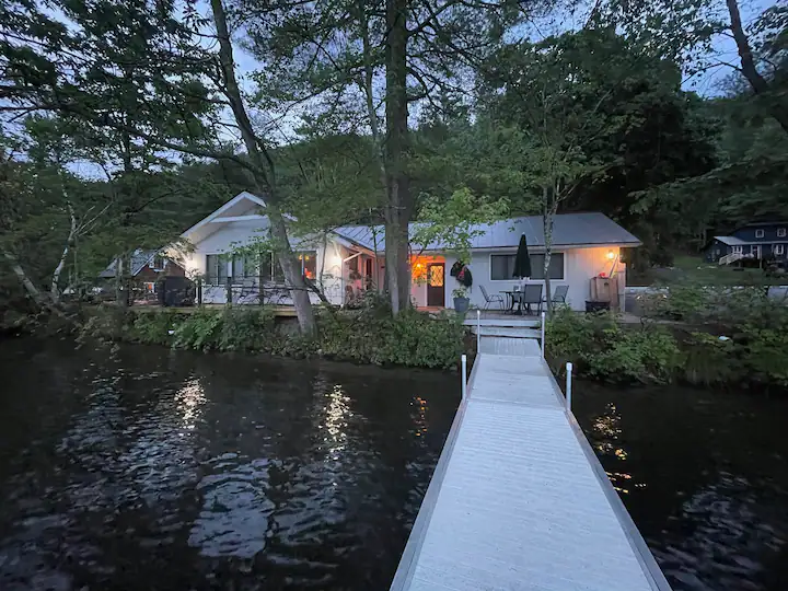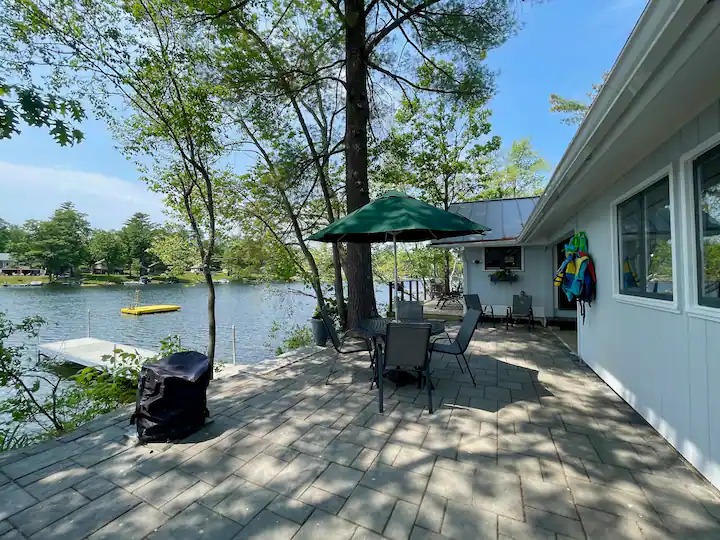 Visit this charming lake cottage anytime of the year. Enjoy an early morning kayak (we have two that you can borrow) and listen to the loons calling. Fish from the end of the dock, swim out to our big yellow raft to sunbathe. An 18 hole golf course is around the corner. Hike nearby trails. Dine al fresco on the patio or deck after grilling your favorite catch. We are well stocked with games, books and there is A/C but we like to feel the breeze come through windows off the lake!!!