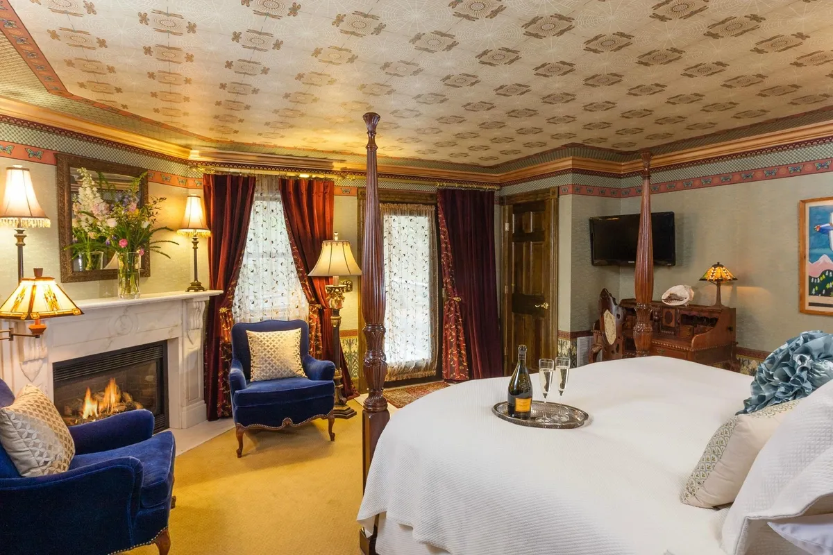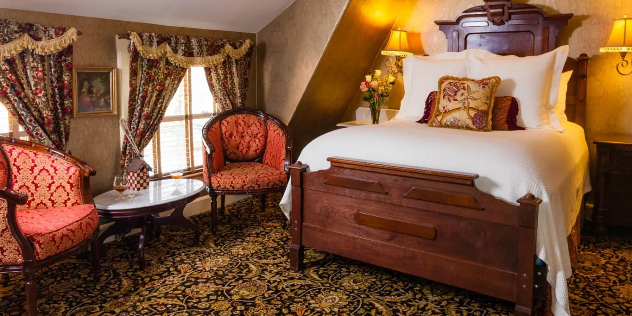 Victorian splendor meets modern convenience at this boutique hotel in the beautiful village of Woodstock. This luxury Vermont inn features 8 romantic guest rooms, all with private baths, period antiques, flat-screen cable TV, Wi-Fi, and air conditioning. Four suites with fire places and four classic rooms available. Guests enjoy a sumptuous candlelight breakfast, featuring a selection of entrees and served at individual tables. This romantic Vermont bed and breakfast also offers a tavern and terrace with a pond and perennial garden. Plenty of free parking for guests.