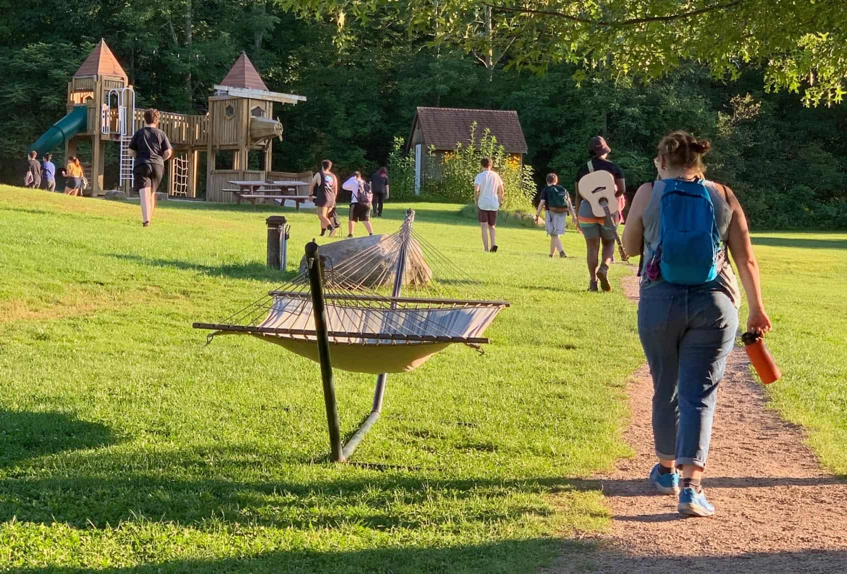When you picture a scenic Vermont getaway, chances are that image looks a lot like Common Ground Center. Rolling, green fields bordered by quiet woods, with mountains visible in the distance. Barn spaces, cozy cabins. A boulder-strewn creek with the calm of babbling water. A swimming pond, campfires, stars, fireflies. This is the place.