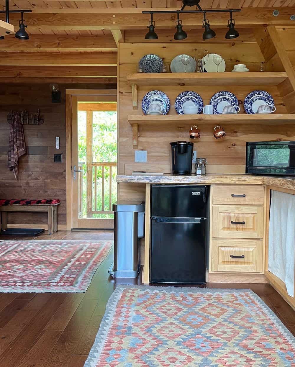 Step inside to discover a cozy loft bedroom, a galley kitchen equipped with modern amenities, and a welcoming living room. The wrap-around deck brings in dramatic views of the pond and gardens below and is the ideal spot to start and end your day's adventures. As the daylight fades, the electric fireplace casts a warm glow, inviting you to relax and reminisce about the day's adventures.