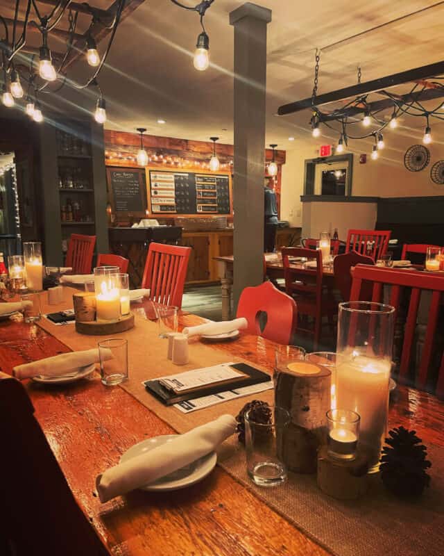 Located 1.7 miles from Mad River Glen, and 4.8 miles from Sugarbush’s Lincoln Peak, our boutique inn features 18 guest rooms with unique family-friendly layouts to maximize accommodation. The three buildings containing inn rooms are spread throughout the property. Breakfast is included for all Inn guests. In addition to our guest rooms, we also have an onsite restaurant and pub, and a game room where guests can play a game of shuffleboard on the newly refurbished antique shuffleboard table, or a game of foosball. Board games, cribbage, and cards are also available.