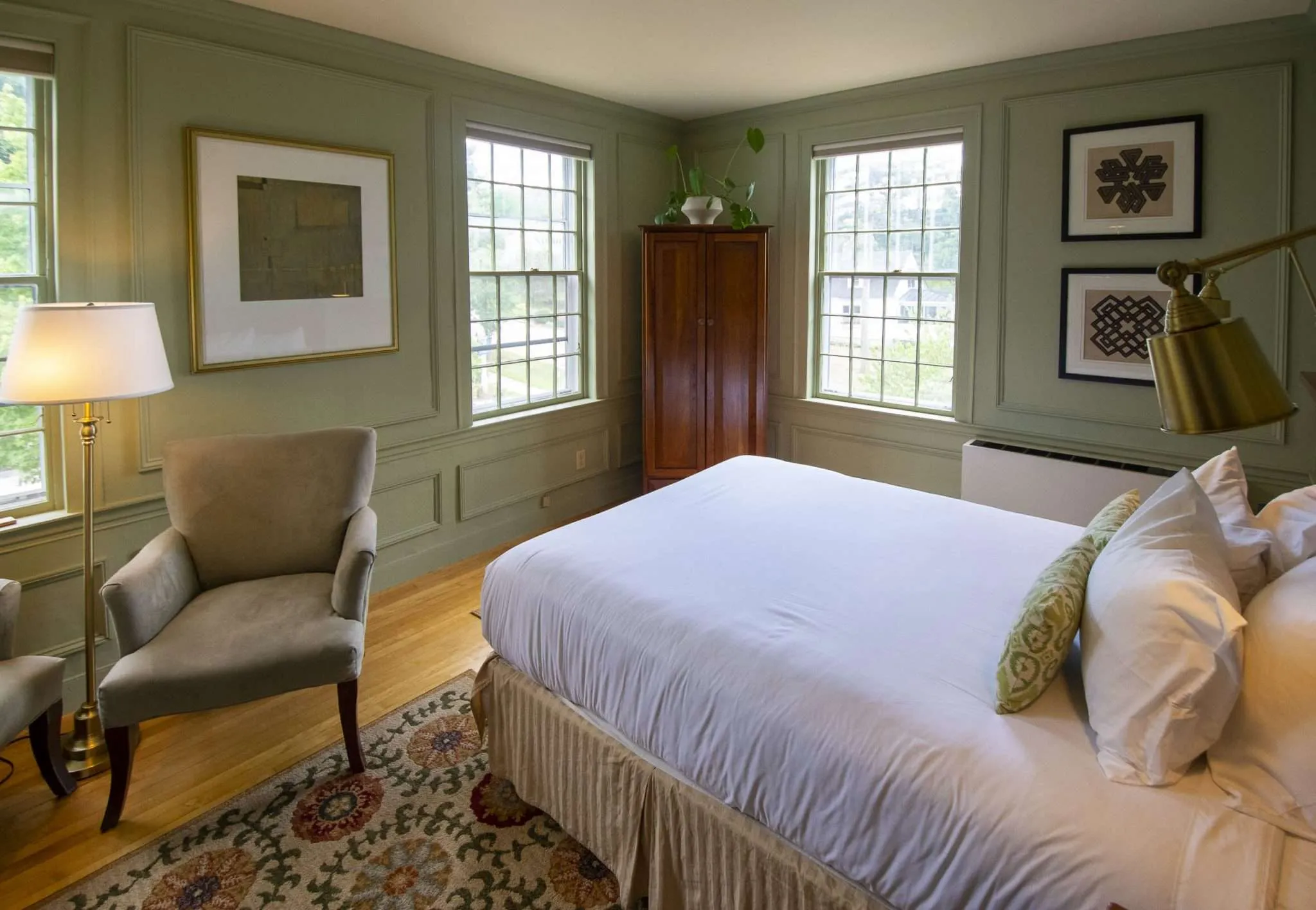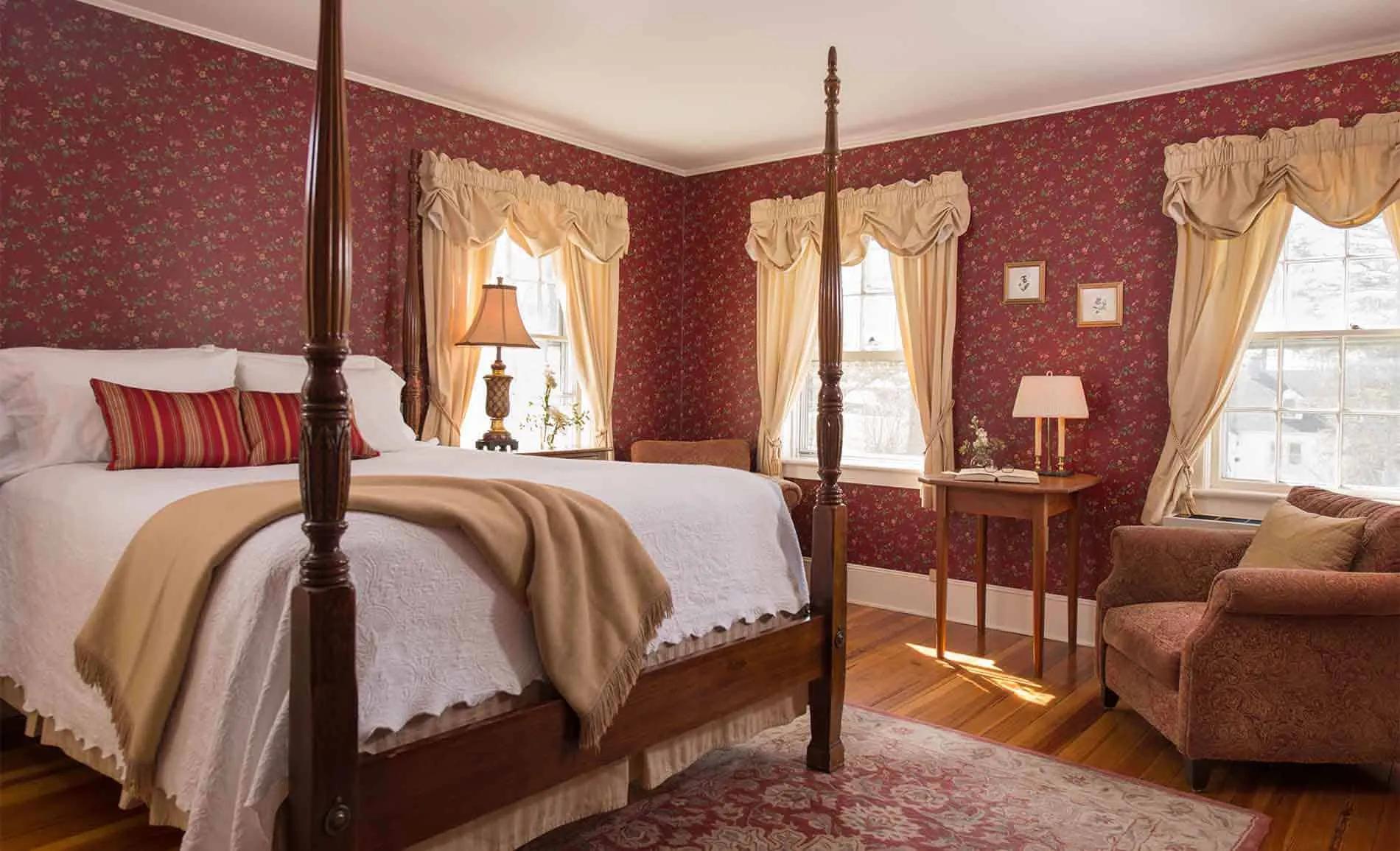 This historic 20-room former governor's mansion is Middlebury's only classic full service Vermont Country Inn and offers the essence of New England warmth. Surrounded with 4 acres of lawns and gardens, inside, candlelit dinners await you. Large, comfortable rooms offer modern amenities in period decor, some with whirlpool tubs and fireplaces. Enjoy complimentary 24 hour coffee service, cookies, sauna, steam shower, comfortable wine bar and Middlebury's only accommodation where a full breakfast is included.