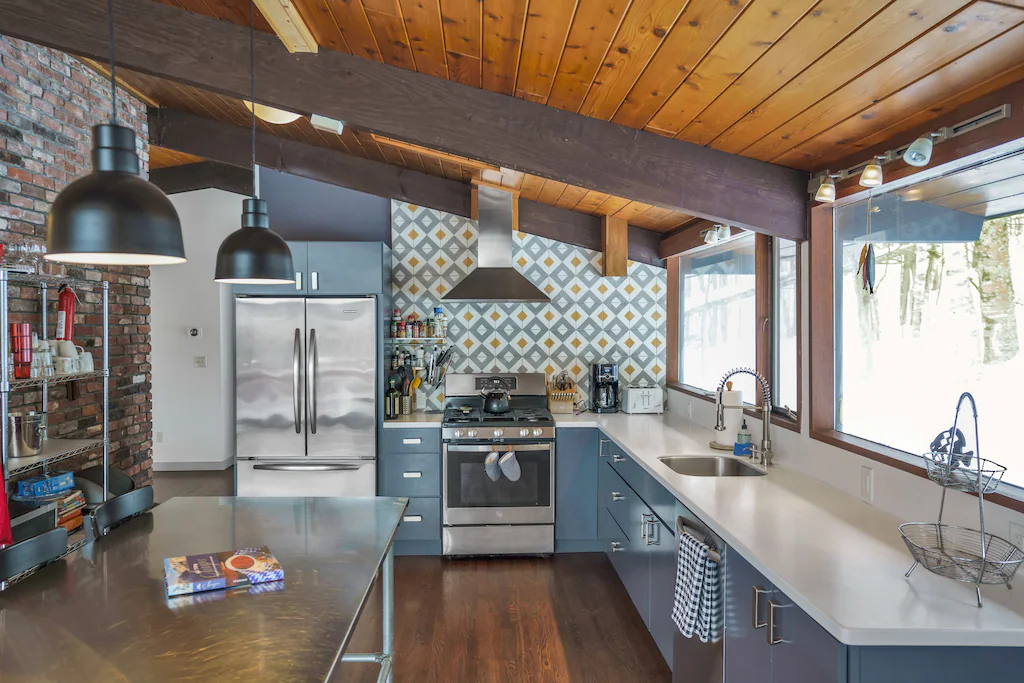 An amazing year round vacation rental -2miles to skiing in the winter and adjacent the outdoor HOA pool and tennis courts in summer. This newly updated 5-bedroom, 3-bathroom home sleeps 10 ( or 10 adults with 2 extra kids), a great family friendly set up and flow. The whole house was recently fully renovated. Absolutely amazing year-round views of Mt. Mansfield and surrounding mountains, the ski trails and lush colorful foliage in the fall. On the lower level, the house has a full mud room with ski racks/storage. A private hot tub (with views) and game room (foosball) with flat screen and fireplace on the first level. 3 bedrooms, a full bath and laundry room on the lower level as well. Upstairs has an open floor plan with a larger main living room and large fireplace, dining area for 10 + people, a full kitchen with breakfast bar. The master has adjacent bathroom , an additional bedroom and bathroom on the upper level as well. Lots of outdoor deck space with picnic table, gas BBQ and loungable Adirondack chairs. All stylishly and comfortably put together for a relaxing vacation. Well appointed amenities throughout.