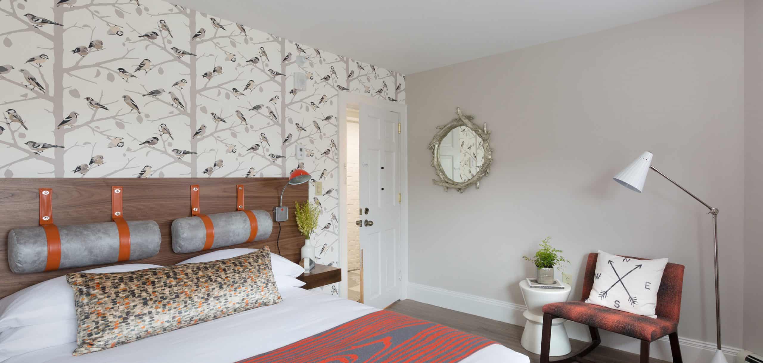 Ski, bike, hike, shop or just enjoy the beautiful Green Mountain scenery while staying at our Stowe, Vermont hotel; Field Guide Lodge is an unexpected and delightful starting point for exploring Stowe in any season. Centrally located in the heart of downtown Stowe and a short drive from Mount Mansfield, Field Guide's rooms and suites in the Lodge and Trail House offer year-round accommodations perfect for an intimate escape, a friends’ weekend, or a family get-together.