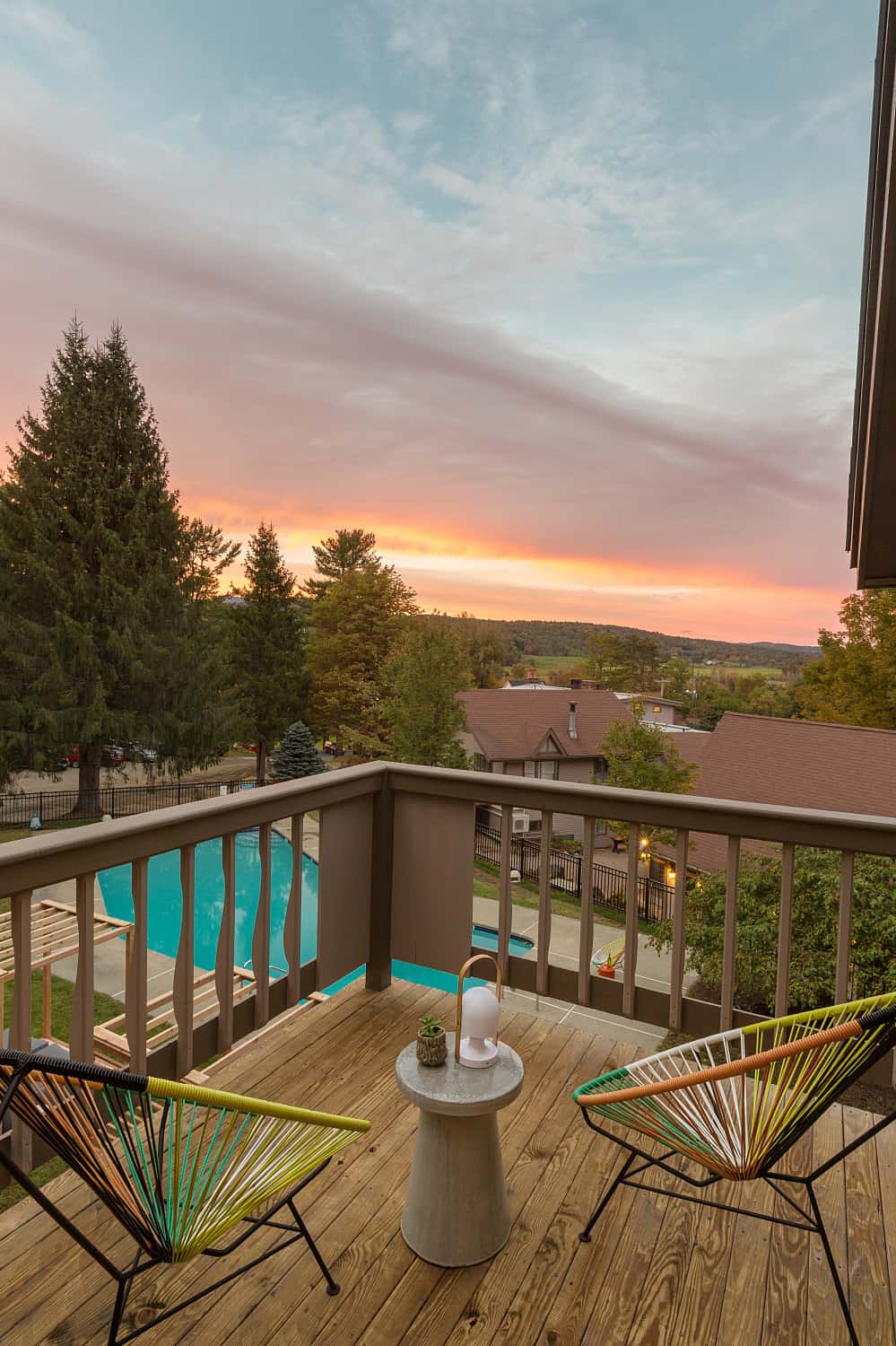 Explore all that Stowe has to offer from our modern take on a classic Vermont ski house. Mountain biking in Vermont is easily accessed on the trails leading from our Stowe hotel's back door. Shopping in downtown Stowe is just a short 10-minute walk away. Stowe Vermont ski slopes are a 15 minute drive (or free shuttle ride) up the hill. We offer storage for your active gear, and a printed field guide to help you choose the Stowe area activities and attractions that fit your lifestyle and budget. Our expansive guest lounge and seasonal heated pool are perfect after hitting the slopes, leaf peeping, hiking, or mountainside yoga.