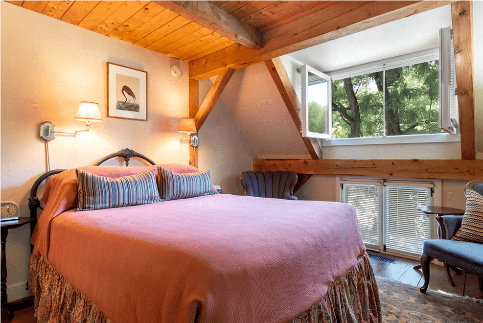 Tucked in the woods on 21 acres inside an historic 1792 house, The Inn at Weathersfield is a peaceful, private hideaway for couples with 12 unique guest rooms, all private baths, a farm-to-table restaurant, The Hidden Kitchen, outdoor wedding Chapel in the Woods, outdoor event space, cooking classroom and more. Explore the grounds. Sit by the pond and read. Sip your morning coffee out in the garden or a glass of wine on the front porch. Hike the nearby trails then sit by the outdoor fire pit with a drink from the bar. Dine inside or out on the back deck. Explore Woodstock's charming downtown shops. Hike Ascutney Mountain or in the winter, ski Okemo or Killington.