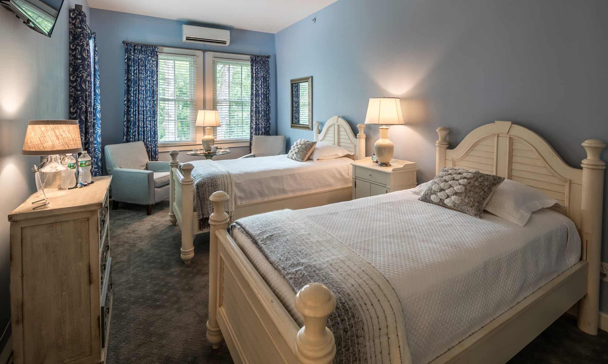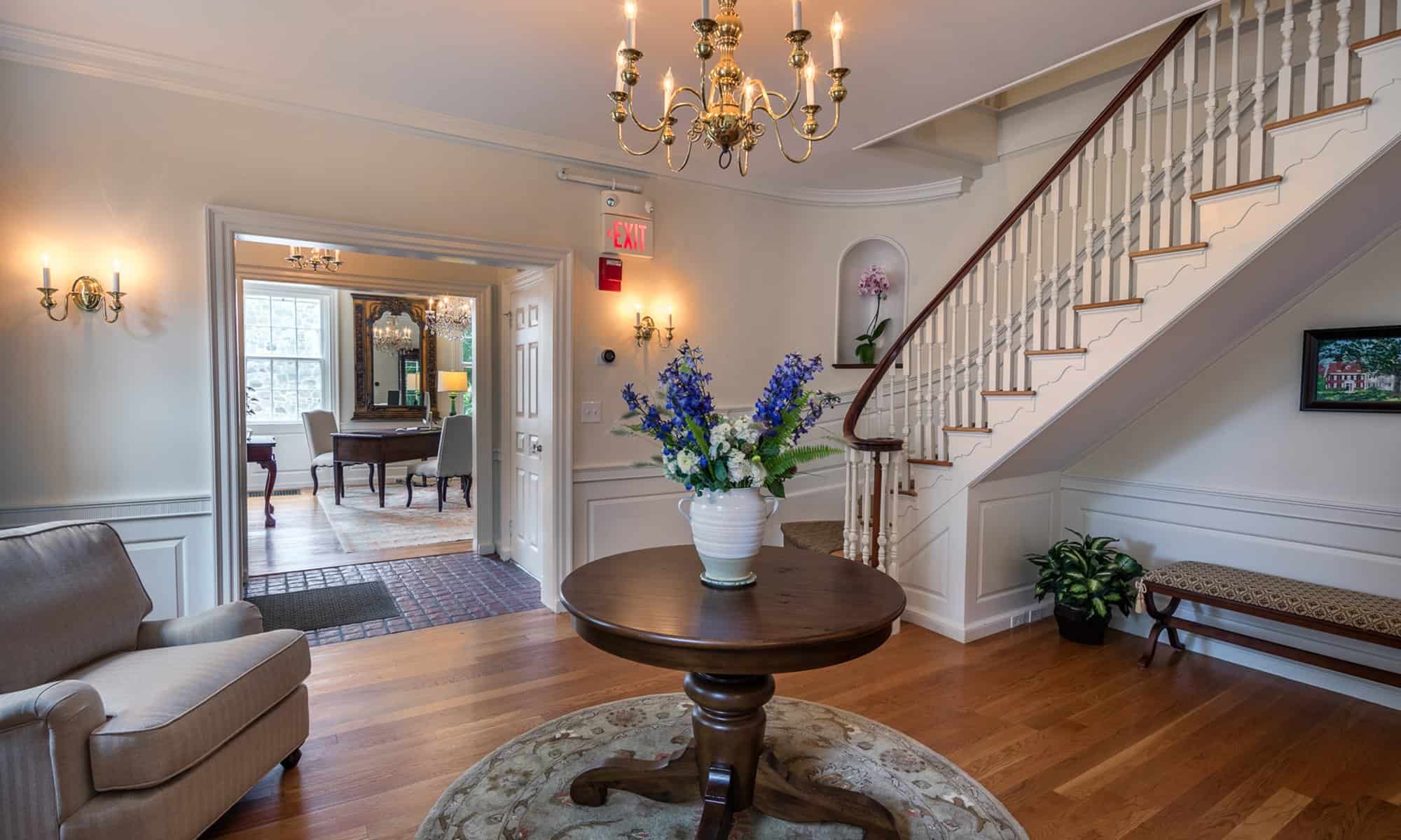Uniquely situated in the very heart of Woodstock Village, our sweeping grounds overlook Mt. Tom, the Ottauquechee River, and Middle Covered Bridge in the center of town. Guests can enjoy our seasonal heated outdoor pool or a walk in the gardens, and by the river. On a chilly day, relax by the fire in one of our many inviting common spaces. Guests will find a fresh, relaxing atmosphere and updated décor that highlights our classic architecture. Make yourself at home in our inviting common spaces and in your guest room (10 guest rooms overall). Enjoy our special breakfasts included in your stay. Chat with Tony and Jill, who both welcome you, and your children 14 and older, to their bed and breakfast.